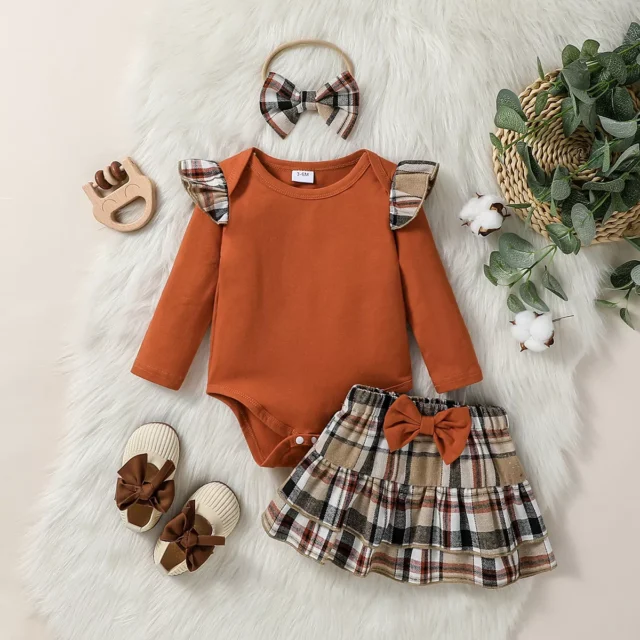 This set isn’t just about looking adorable – it’s about making memories. The soft jersey fabric feels gentle against delicate skin, while the plaid skirt adds a touch of sophistication to your baby’s look. The bow ties it all together, making this outfit an instant standout for photos or special outings. Whether you’re celebrating a milestone, attending a family dinner, or simply enjoying a crisp autumn walk, your little one will look picture-perfect and feel comfortable all day long.
