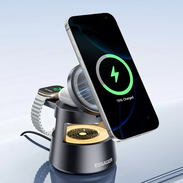 • All-in-One Convenience: Charge your phone, smartwatch, and wireless earbuds simultaneously without multiple adapters.