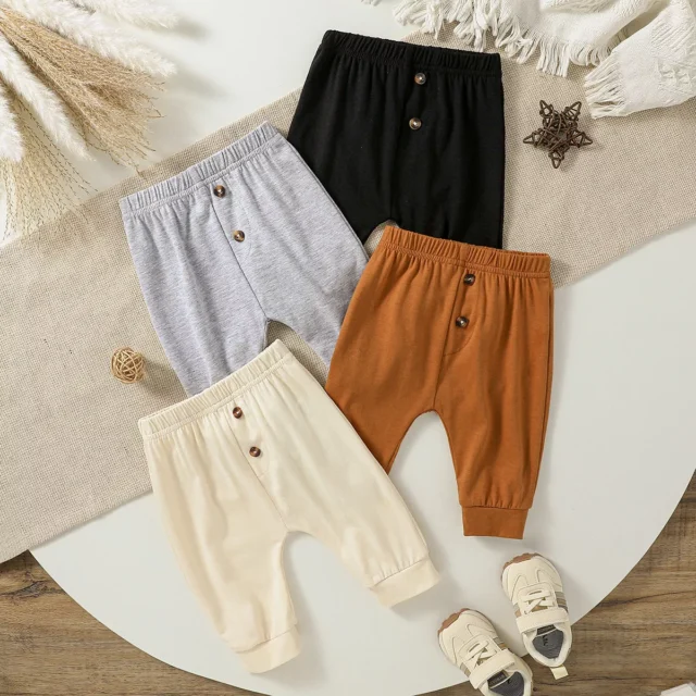 From warm summer strolls to cozy winter snuggles, these versatile trousers adapt to every season. Their simple, casual style is great for everyday wear, while the neat button detailing adds a charming touch for special outings. You’ll always have the right pair ready for your baby, no matter the occasion.