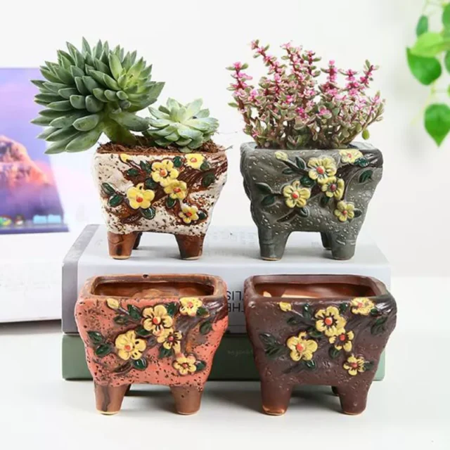Introduce an elegant touch to your home or garden with our 4-Piece Set Ceramic Plum Blossom Fleshy Plant Pots. These delightful pots are perfect for showcasing your favorite small plants or flowers while enhancing your decor with their artistic flair. With their beautiful colors and charming design, these planters are sure to become a favorite in your indoor or outdoor spaces.