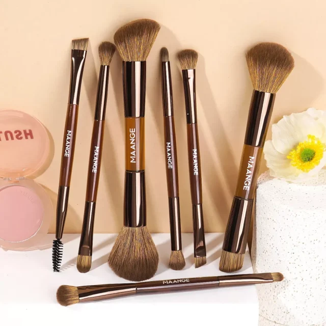 7-Piece Dual-Ended Makeup Brush Set for Foundation, Blush & Eyes – Travel Ready