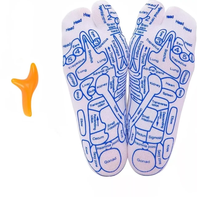 Simply slip on the socks and gently massage your feet along the printed acupressure zones using the included tools. Spend a few minutes daily for noticeable relief and improved comfort.