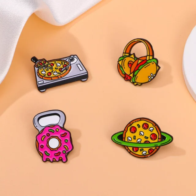 Adorable Food Enamel Brooch Set – Doughnut, Pizza & Burger Lapel Pins