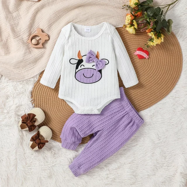 Dress your baby girl in cozy style this autumn with this charming cartoon embroidered outfit set. Perfect for everyday wear, this set combines cuteness with comfort, featuring a soft long-sleeve bodysuit and matching purple trousers. The playful cartoon embroidery brings a touch of fun, while the premium fabric blend ensures your little one feels as good as she looks. Designed with convenience in mind, it’s easy to slip on and off, making dressing time a breeze.