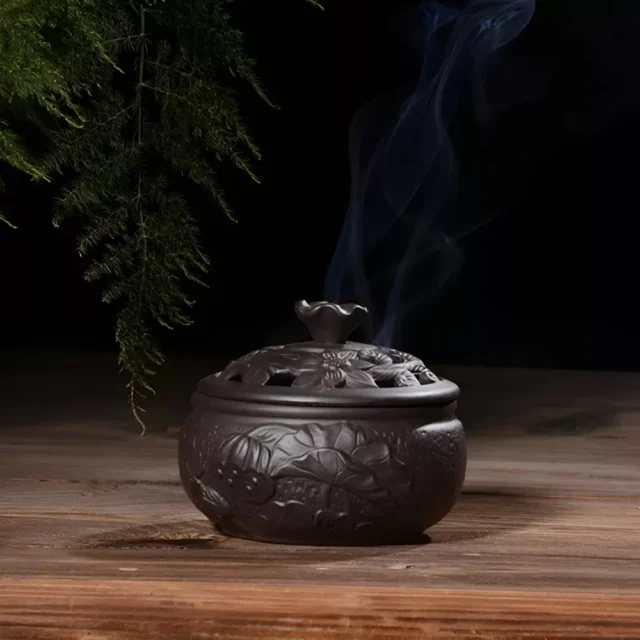 Made from high-quality ceramic, this incense holder is safe and free from harmful chemicals, ensuring a clean and natural aromatic experience. Measuring approximately 4 inches tall and 3.3 inches wide, it fits perfectly on any tabletop without taking up much space. The warm brown color and lotus grain design add a touch of Buddhist-inspired elegance that complements any décor style.
