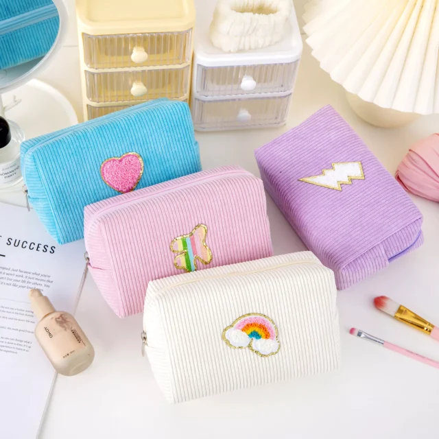 Upgrade from boring makeup bags to this delightfully charming organizer that makes accessing your products a joy. Notice how the soft corduroy exterior feels luxurious in your hands while protecting your cosmetics. The perfect blend of function and cuteness – treat yourself to this adorable pouch that keeps your essentials safe and stylish!