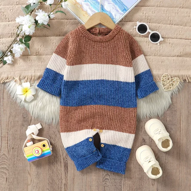 Wrap your little one in cozy comfort with this charming knitted baby romper, designed to keep your newborn or infant snug and stylish from spring through winter. Crafted from 100% polyester with a soft knit texture, this long-sleeve jumpsuit features a playful striped pattern that looks great on both boys and girls. The breathable fabric gently hugs delicate skin while providing warmth on cooler days, making it perfect for daily wear or special outings.
