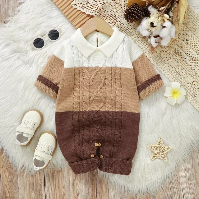 Wrap your baby in gentle warmth and adorable style with this cozy newborn romper. Designed for infants from newborn up to 18 months, this long-sleeve jumpsuit is made from soft acrylic knit fabric that feels gentle on delicate skin. Its charming striped pattern and classic turn-down collar create a timeless look your baby will love wearing every day.