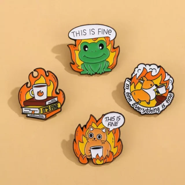 Add a playful, stylish twist to your everyday look with this Cute Cartoon Animal “This Is Fine” Enamel Lapel Pin. It’s more than just an accessory – it’s a statement, a smile, and a little spark of joy you can take with you anywhere. Order yours now and let your style do the talking.
