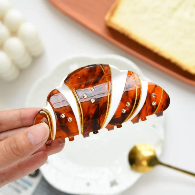 Elevate your everyday hairstyle with this Refreshing World Delicious Croissants Hair Claw. Crafted from durable acrylic, this charming hair claw is designed with a cute cartoon croissant that adds a playful touch to any look. Perfect for women and girls who love fun and stylish hair accessories, this clip is both practical and fashionable, keeping your hair neatly in place while showing off your unique personality.
