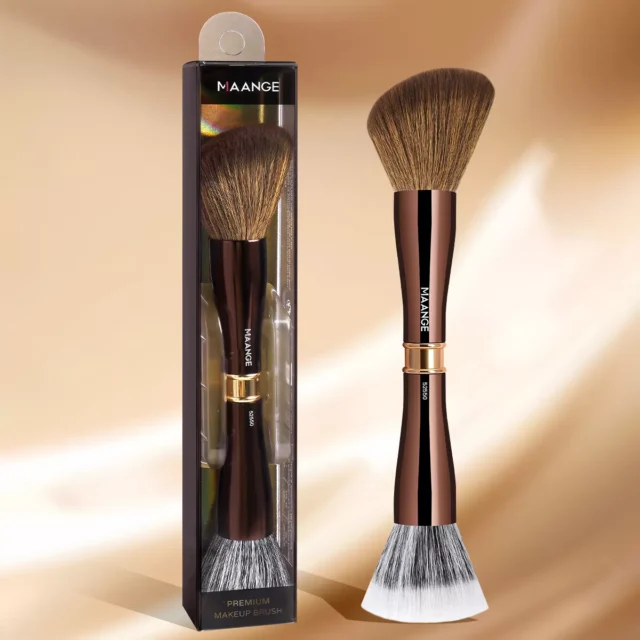 Dual-Ended Angled & Flat Top Makeup Brush for Contour, Blush & Sculpting