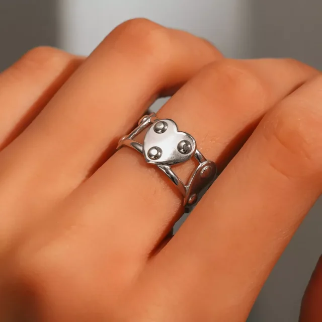 Elegant Heart-Shaped Adjustable Stainless Steel Ring for Women