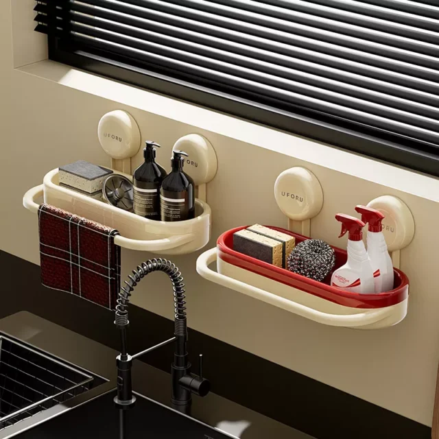 Keep your kitchen sink neat and tidy with this kitchen storage rack designed to hold your cloths, sponges, scrubbers, and hand soap. Its wall-mounted design with strong suction cups means no drilling or tools are required, making installation quick and hassle-free. Crafted from durable ABS plastic, this rack offers an eco-friendly and space-saving solution for a clutter-free kitchen workspace.