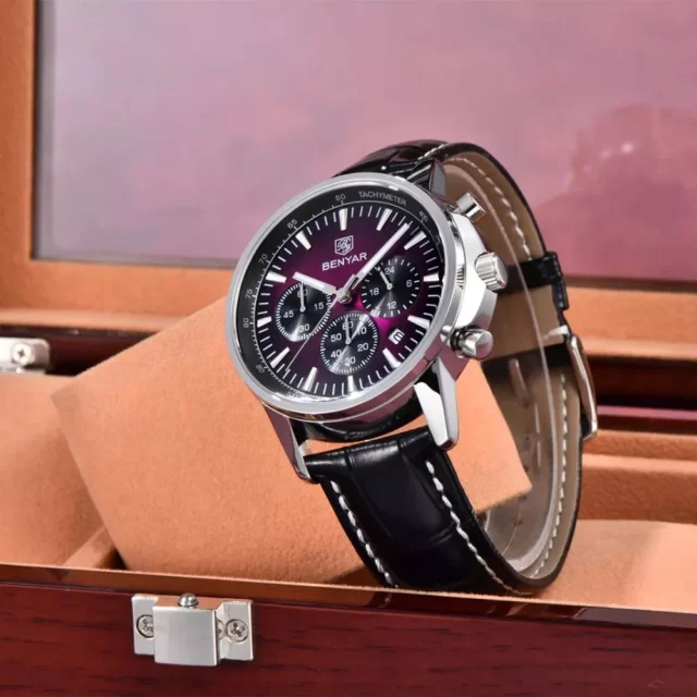 • High-Quality Leather Strap – The premium leather band adds a luxurious touch while ensuring a comfortable, secure fit throughout the day. It’s soft to the touch but built to last.