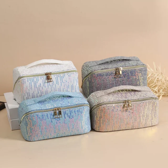 Upgrade your storage game with this chic, spacious, and travel-friendly cosmetic tote. With its beautiful sequin style and practical design, it’s the perfect blend of glamour and convenience. Get yours today and turn every makeup moment into a luxury experience.