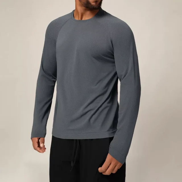 Men’s Seamless Compression Long Sleeve Workout Shirt – Quick Dry & Breathable