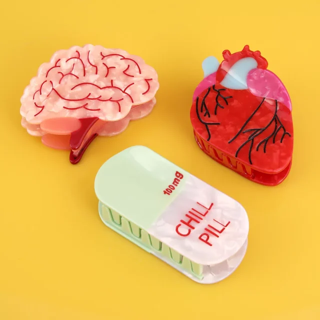 Personalised Acetate Brain, Heart & Chill Pill Hair Claw Clip