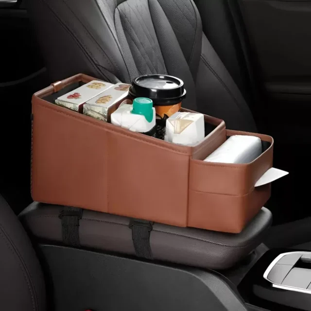 Unlike ordinary car organizers, this product combines elegance with practical function. Its refined leather finish enhances your car’s interior, while the thoughtfully divided compartments make it easy to manage all your essentials. The built-in cup holder ensures your beverages are secure during travel, and the compact design allows it to fit in nearly any vehicle without interfering with comfort. Whether for daily commutes, weekend drives, or long-distance trips, this organizer keeps your car neat and your items within reach.
