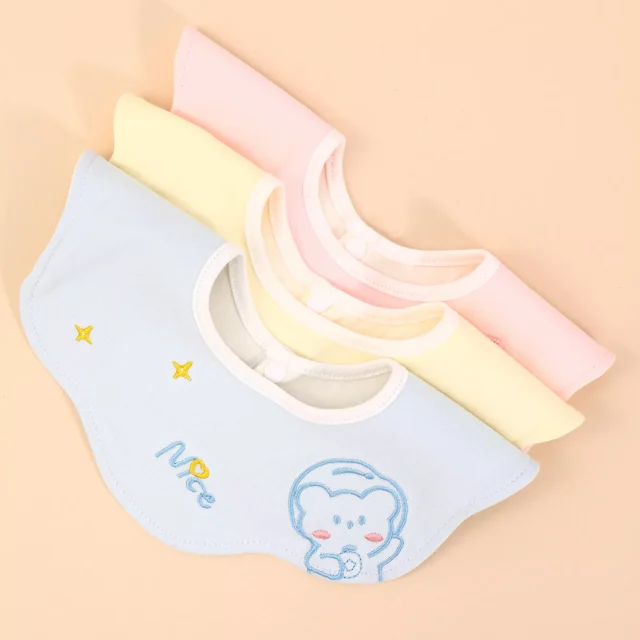 These baby bibs feature a simple yet cute daily style, suitable for both boys and girls. Lightweight and breathable, they prevent irritation and make feeding or teething moments easier for parents. The solid patterns complement any outfit while maintaining a practical, easy-to-use design for everyday wear.