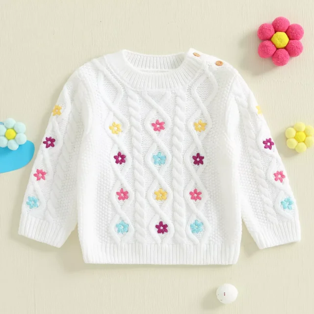 If you’re looking for a cozy, stylish, and practical sweater for your toddler, this flower-embroidered knit pullover is the perfect choice. Add it to your little one’s wardrobe today and enjoy the perfect blend of comfort, quality, and cuteness.