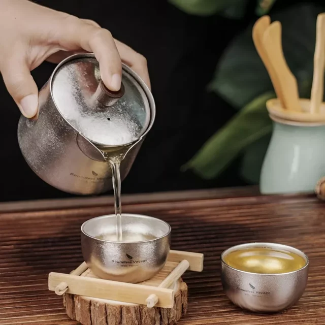 This set is more than just a tea maker—it’s a companion for your journeys. Its ultralight, robust titanium construction makes it ideal for backpackers and travelers, while the thoughtful design elements like anti-scald layers, wooden handles, and a precision tea strainer elevate your tea experience. Whether steeping your favorite loose-leaf tea at sunrise on a mountain trail or enjoying a calm afternoon indoors, this set combines functionality and elegance.
