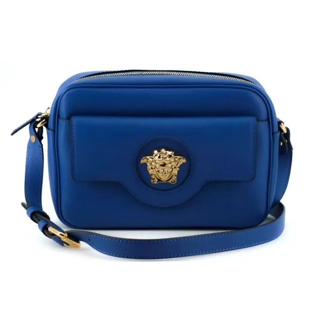 Elevate your accessory game with the Versace Camera Case Shoulder Bag, a perfect blend of sophistication and practicality. Crafted from luxurious calf leather in a stunning blue hue, this bag adds a touch of glamour to any outfit. Its versatile design, complete with a removable and adjustable strap, ensures it’s perfect for both casual outings and upscale events.
