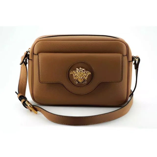 Versace Brown Calf Leather Camera Case Shoulder Bag – Elegant & Versatile
