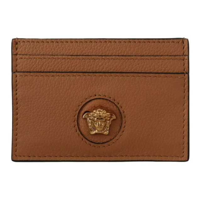 Elevate your accessory game with the stunning Versace Medusa Head Brown Card Holder Wallet. Crafted from 100% authentic calf leather, this wallet blends luxurious design with everyday practicality. Its sleek brown finish, adorned with the iconic Medusa head logo and gold-tone hardware, makes it an unmistakable statement piece for the modern professional or style-conscious individual.