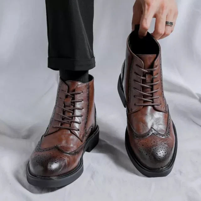 These boots are best worn during autumn and winter, when a combination of warmth and style is essential. Pair them with jeans, chinos, or even dress pants for a versatile look that transitions from day to night seamlessly. Their unique mix of military-inspired structure and vintage brogue elegance makes them stand out in any wardrobe, offering a bold statement without being overpowering.