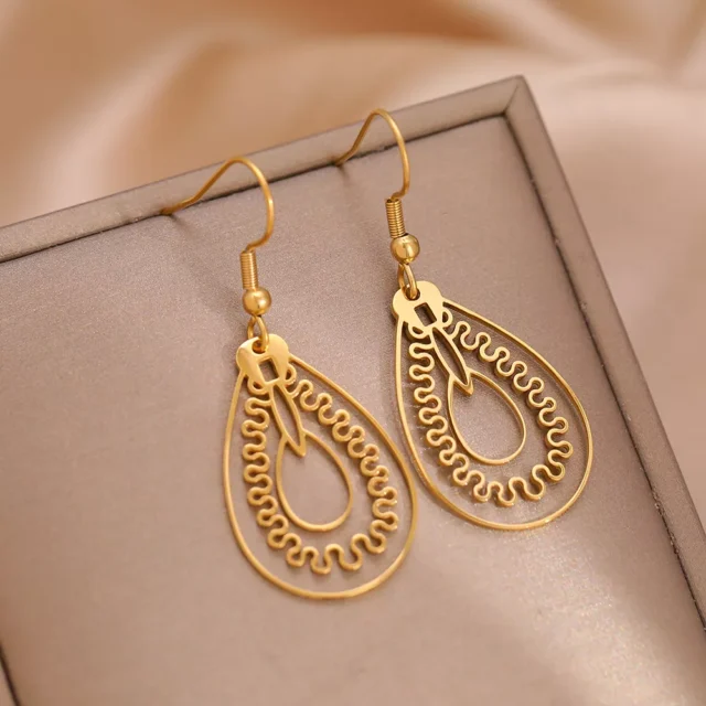 What sets these earrings apart is their perfect fusion of vintage charm and modern resilience. The geometric water drop shape and spiral stripe texture catch the light beautifully, drawing subtle attention without being overly flashy. The stainless steel construction ensures they remain as stunning as the day you first wear them, no matter how often you use them.