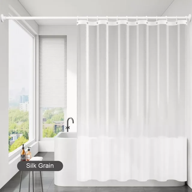 Waterproof PEVA Silk Grain Shower Curtain Liner with Hooks – Multiple Sizes