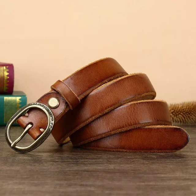 Women’s Genuine Leather Belt with Vintage Copper Buckle – 1 Inch Wide