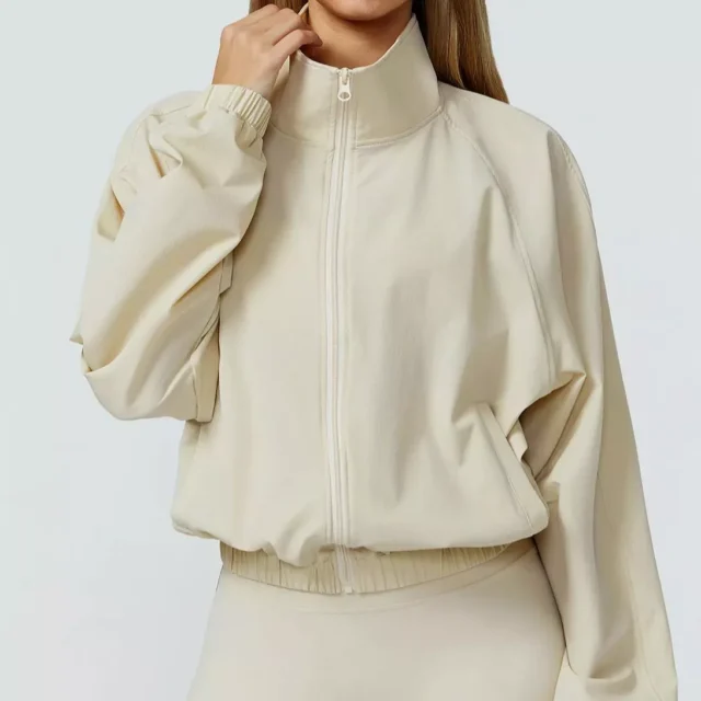 This jacket is more than just sportswear—it’s your go-to companion for an active lifestyle. Its flattering cut enhances your natural shape, while the smooth, windproof fabric ensures you stay comfortable no matter the weather. The quick-drying material makes it ready for action right after every workout, and the sleek, leisure style allows you to wear it beyond the gym with confidence.