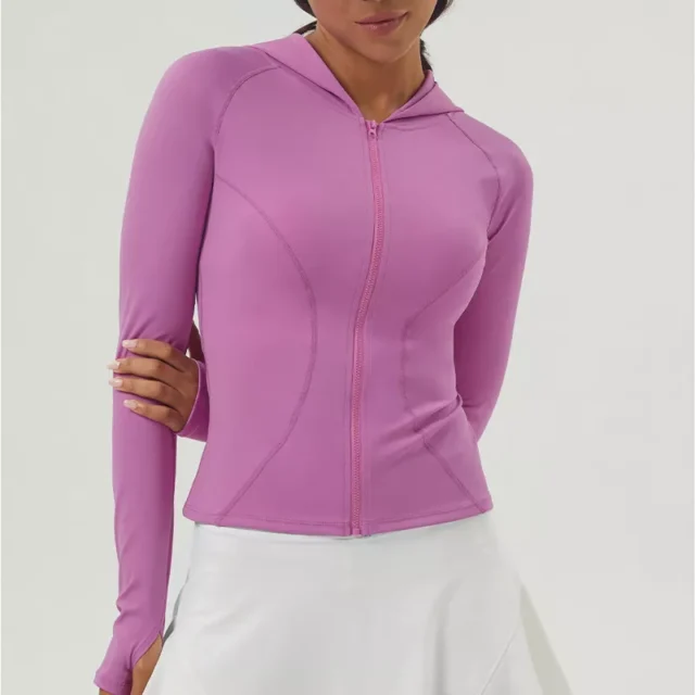 Whether you’re chasing the sunrise on an early morning jog or perfecting your poses in yoga class, this women’s slim fit outdoor running hoodie is designed to keep up with you. Crafted from a high-performance blend of nylon and spandex, it offers the perfect balance of stretch, comfort, and durability. The sleek solid-color design and flattering slim fit create a look that’s as stylish as it is functional, making it your new go-to for all active adventures.