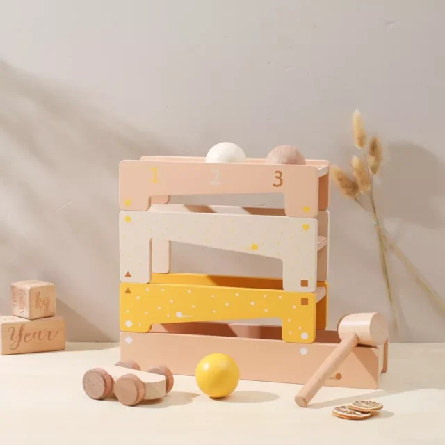 Made from safe, durable wood, this set includes smooth railway tracks and colorful ball tapping accessories that encourage hand-eye coordination and problem-solving skills. The natural wood finish provides a warm, tactile experience, while the musical elements gently introduce children to rhythm and sound. Perfect for solo play or group activities, it’s ideal for use at home, daycare, or preschool settings.